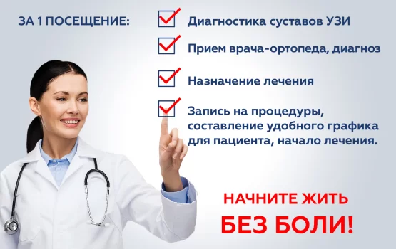 Лечение суставов Вы можете начать здесь же в нашей клинике. Экстренные и срочные процедуры врач травматолог-ортопед может провести в этот же день! У нас есть все необходимое оснащение, мы используем самые современные методики лечения суставов. Для наших пациентов составляем удобный график процедур и манипуляций.